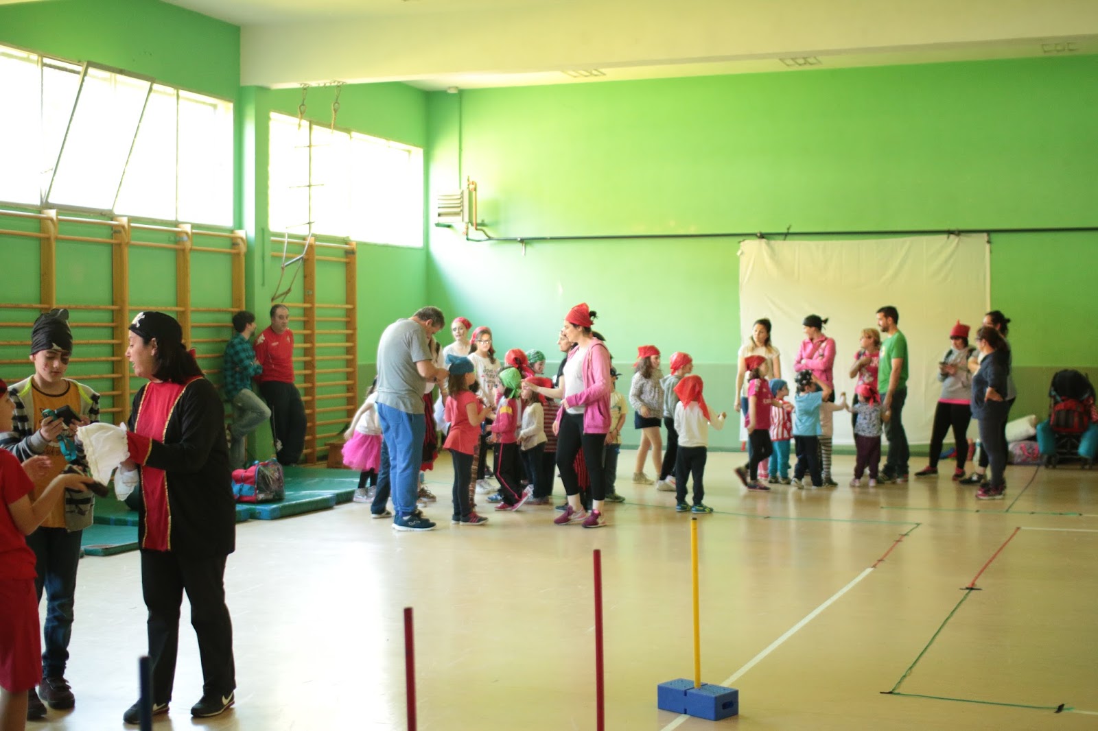 Una vez vestidos de aguerridos piratas, cada equipo debe superar una serie de pruebas, el que primero las complete, podrá comenzar la búsqueda del tesoro.